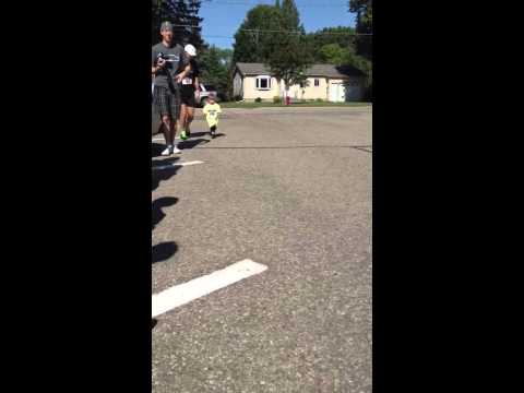 I ran in my first race today, and I did SO good. Pa and Mommy thought someone would have to carry me for most of the 1/2 mile, but I ran the WHOLE race! I had so much fun. Check out the start to the race: